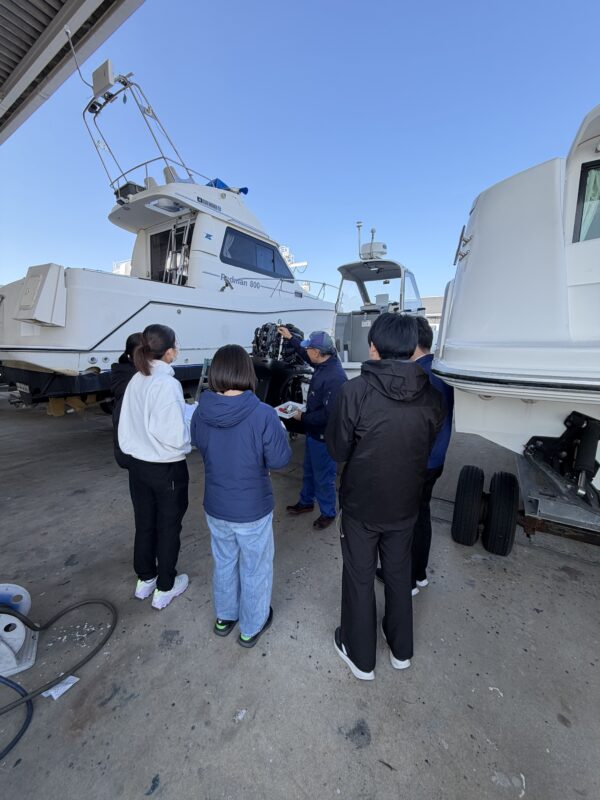 実は12月に学内企業研究会に参加させていただき、その時に興味を持ってくれた学生がマリーナへ会社見学へ来てくれました!