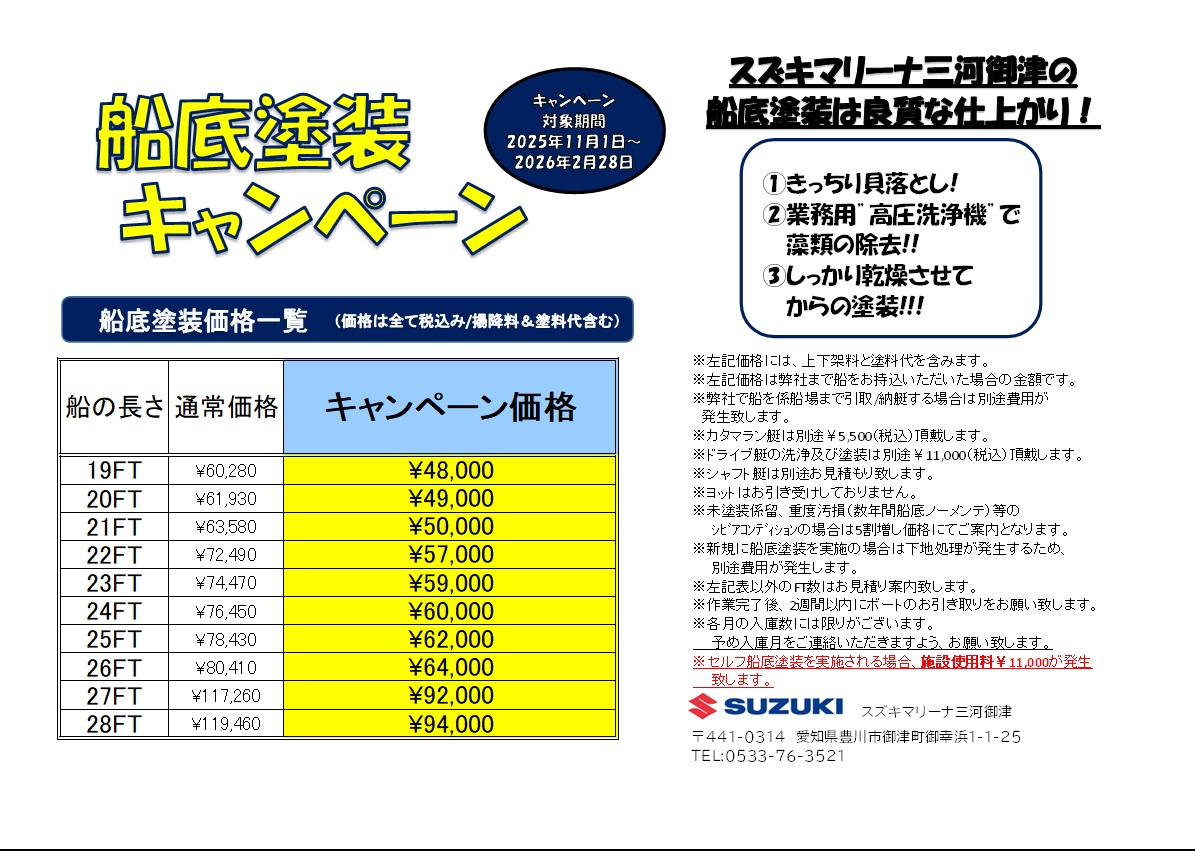 来シーズン気持ちよく出航できるよう、スズキマリーナ三河御津が皆様の愛艇をサポート致します