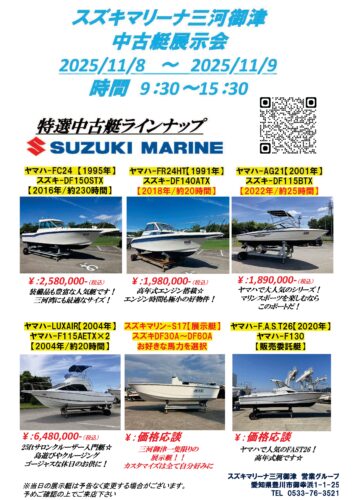 御津で人気のモデルや三河湾で使い易いボートを沢山取り揃えております☆
