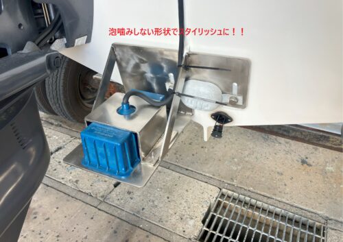 なるべく泡噛みしない位置と形状を吟味しながら、業者さんと打合せをしてステンレスブラケットを作ってもらいました。