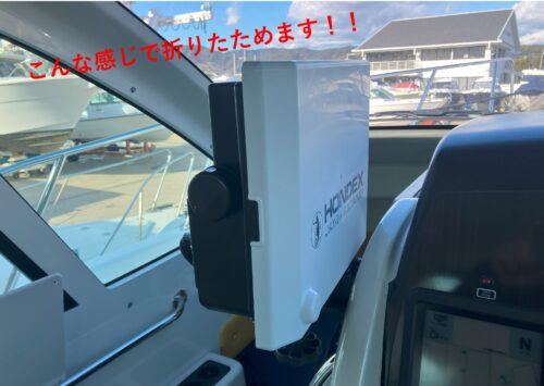 親機モニターは既存のGPS魚探もある関係で、スイングアームにて取付です。