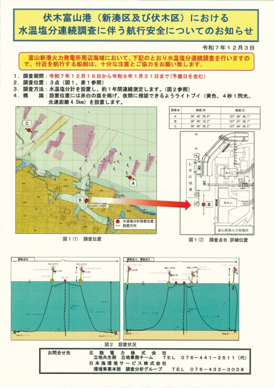 日本海環境サービス株式会社 様 から伏木富山港における水温塩分連続調査についてのお知らせ