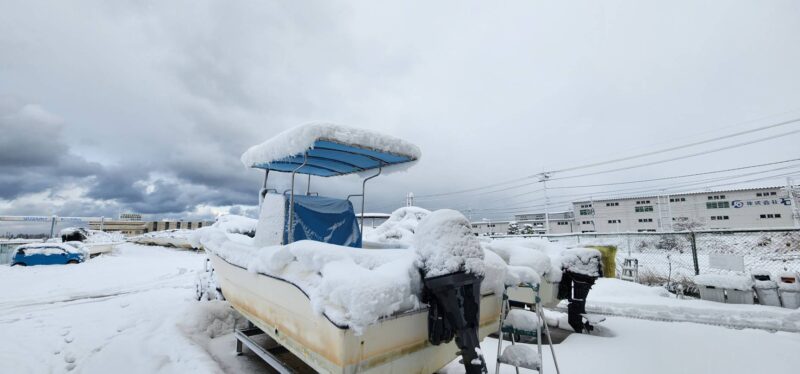 マリーナヤード内除雪完了しておりますので、安心してご来場いただければとおもいます。