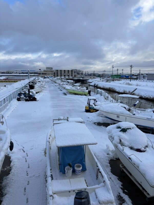 マリーナヤード内 積雪約5cm 思ったほど積もらなかったので良かったです。