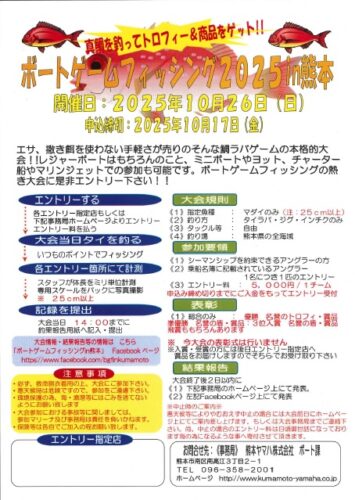 【スズキマリーナ熊本】ボートゲームフィッシング2025in熊本(レンタルボート)