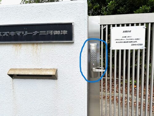 ●扉にボタン式のセキュリティーシステムが有るので、暗証番号を入力してください。