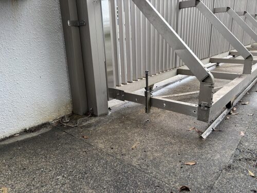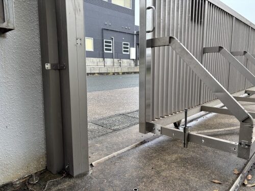 ●扉を開けたら中に入り、ゲートをロックしているストッパー(棒)を外してください。