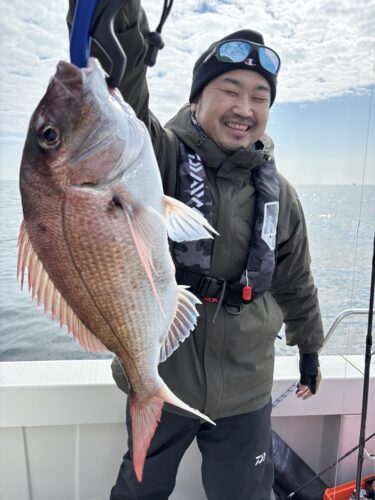 - 続いて、会員のT倉様がメタルジグでマダイ(全長49cm)をキャッチ!