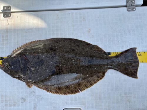 - 会員のT川様が泳がせ釣りで良型ヒラメ(全長64cm・肉厚!)を見事ゲット!