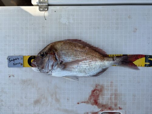 今の時期は比較的浅場でマダイが釣れやすく、体力も十分な良型が狙えます。