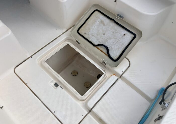 GPS魚探【HONDEX/HE-8S】、個室マリントイレ、イケス、トランサム&ステップラダー